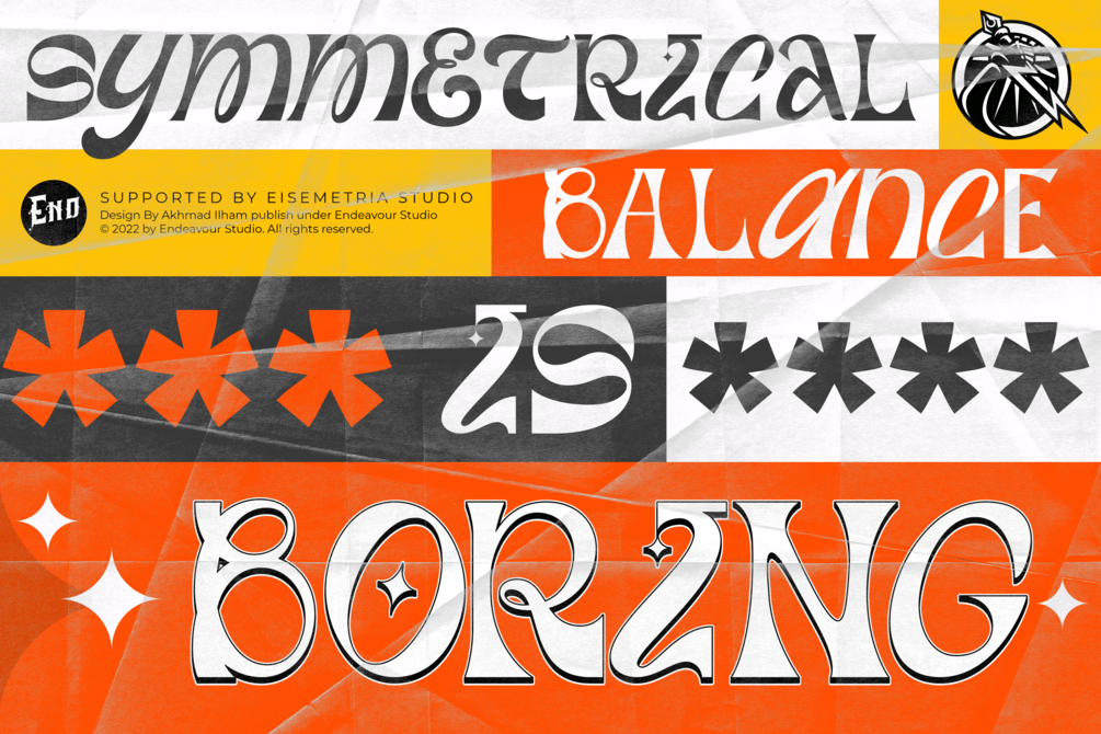 Eureka! That is what Arcimides stated, and it is also what we stated about this font. To reach our own harmony, we must push the limits of all typographic fundamentals. We're not concerned with all of the principles of typography. What we're interested in is how to accomplish full asymmetrical balance while still using a dynamic typeface. That's why we named this typeface Eureka, an Aha moment that means standing out in a crowded market.