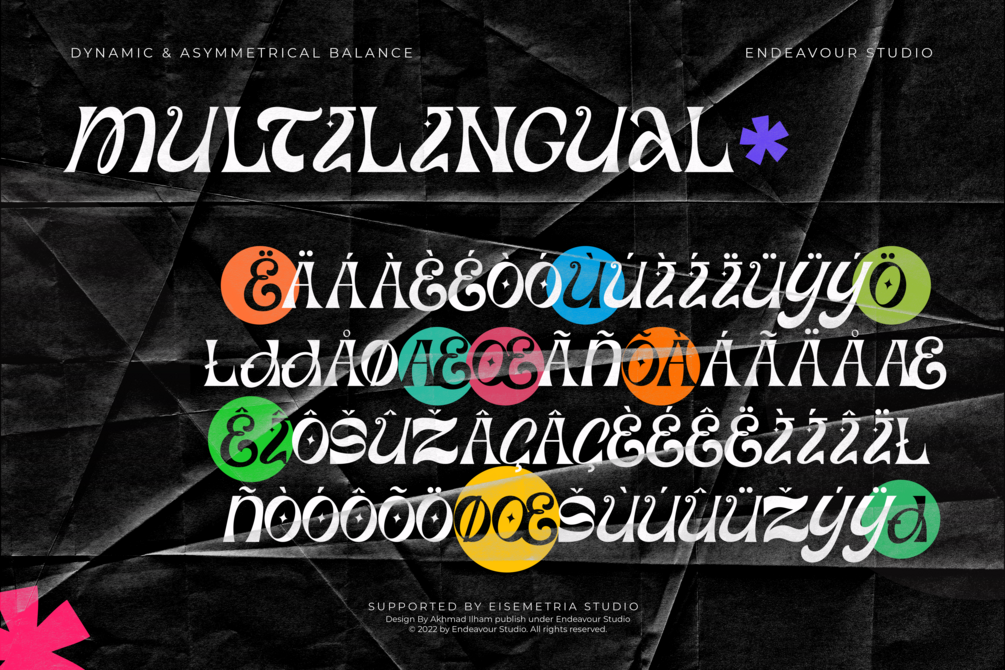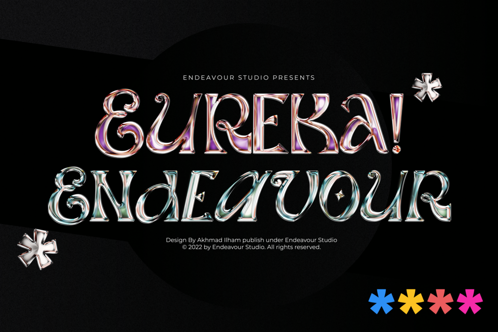 Eureka! That is what Arcimides stated, and it is also what we stated about this font. To reach our own harmony, we must push the limits of all typographic fundamentals. We're not concerned with all of the principles of typography. What we're interested in is how to accomplish full asymmetrical balance while still using a dynamic typeface. That's why we named this typeface Eureka, an Aha moment that means standing out in a crowded market.